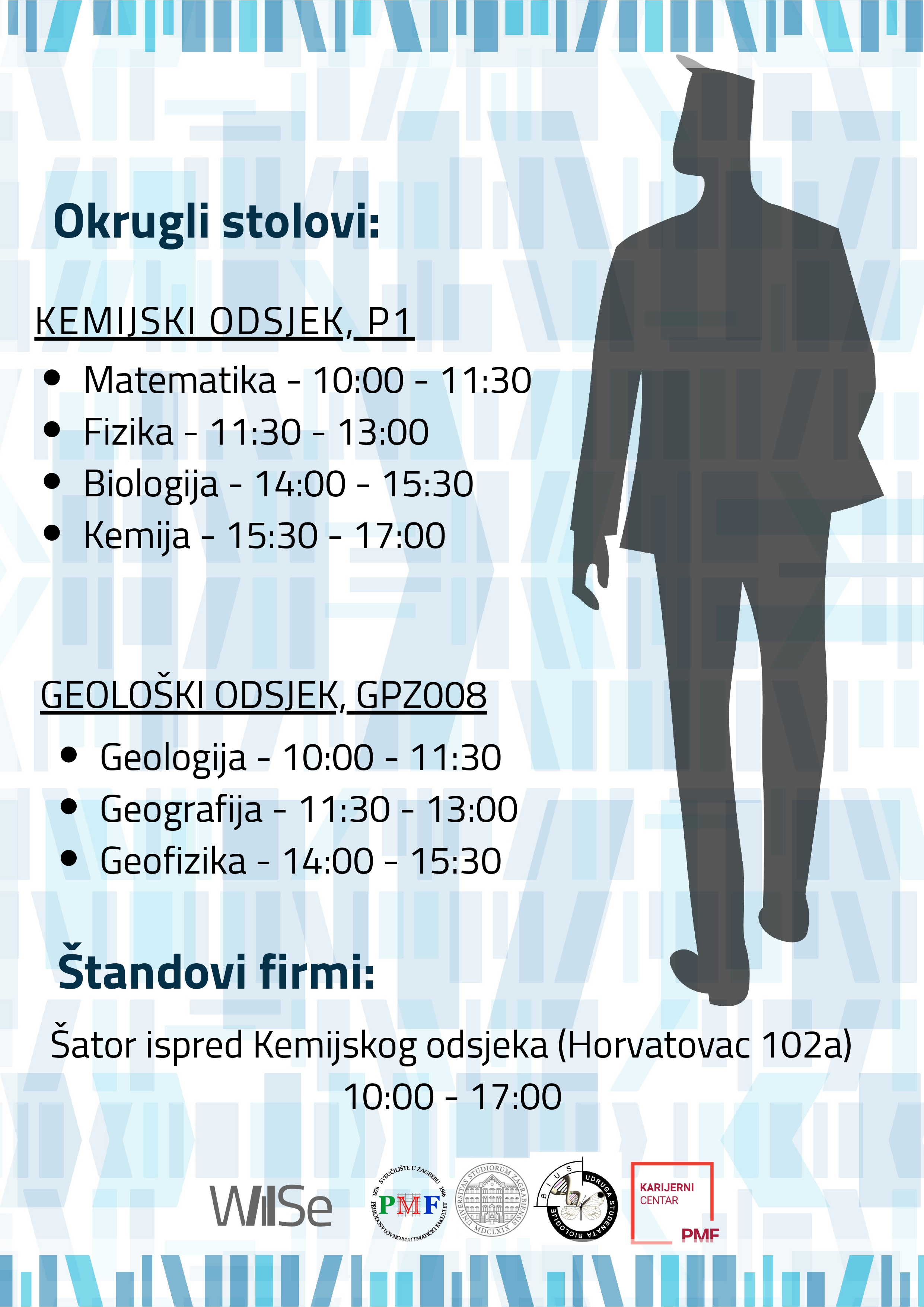 Više od 30 poslodavaca predstavit će se studentima ispred Kemijskog odsjeka (Horvatovac 102a) od 10-17 sati.