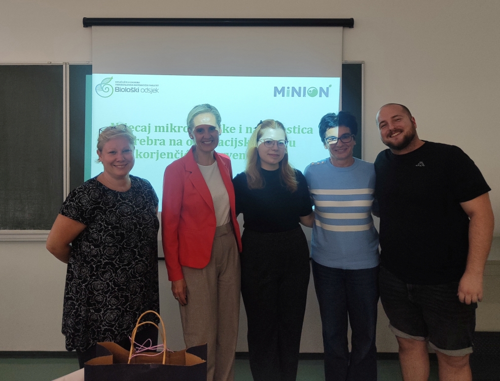 U okviru projekta MINION izrađen je novi diplomski rad. U utorak 23. rujna 2025. diplomirala je Sara Šrepfler, studentica diplomskog studija Molekularne biologije, s diplomskim radom pod naslovom „Utjecaj mikroplastike i nanočestica srebra na oksidacijski stres u korjenčićima crvenog luka“ pod mentorstvom prof. dr. sc. Biljane Balen i ko-mentorstvom dr. sc. Petre Cvjetko.
