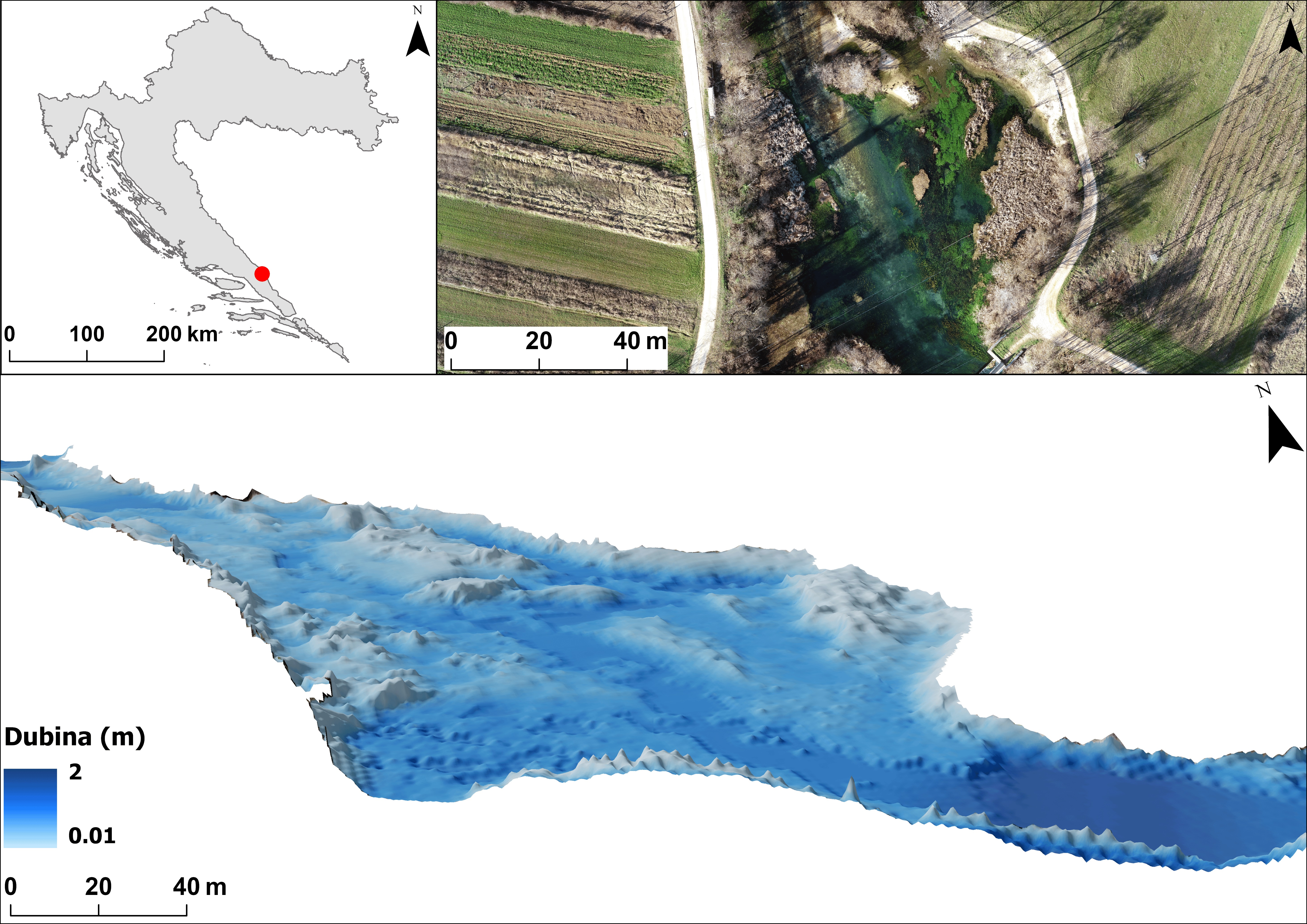Batimetrija odsječka rijeke Vrljike. Izradio: J. Sabolek