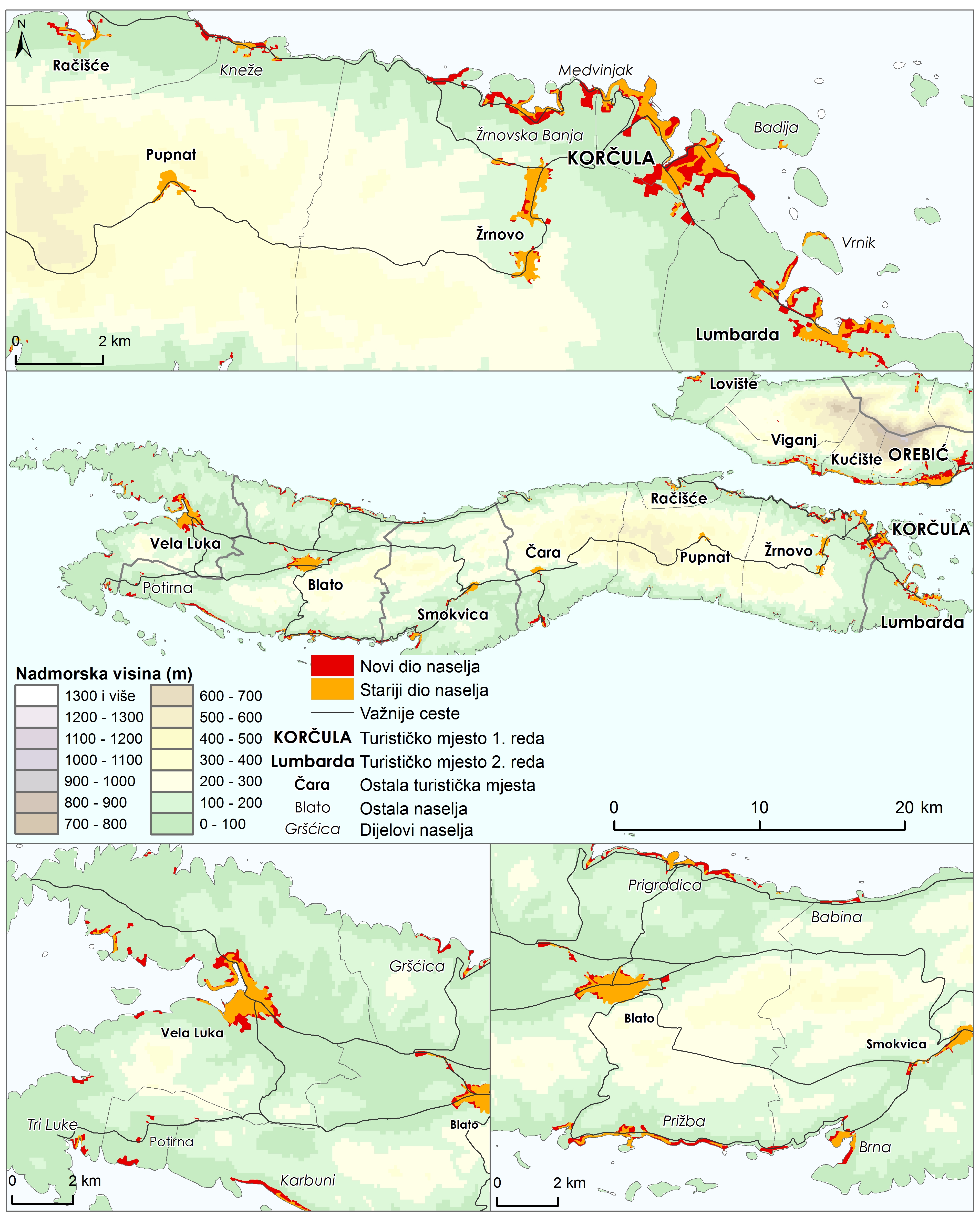 Povećanje naselja na otoku Korčuli u razdoblju od 1960.-ih do 2010.-ih. Izradio: I. Šulc
